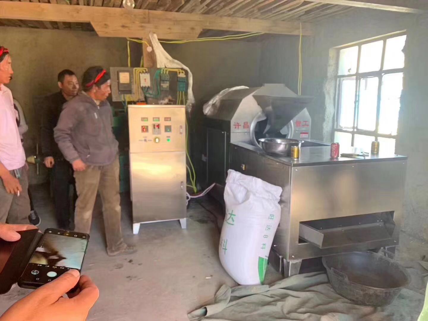 西藏电磁炒青稞机安装调试。